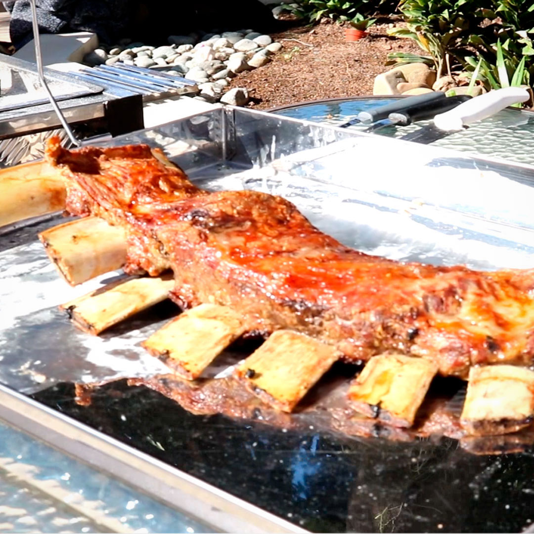 En parrilla a fuego medio-bajo 1,30 del lado del hueso y 30-45 minutos del lado de la carne, para un excelente resultado. En caja china se recomienda 2 horas del lado del hueso y 1 del lado de la carne a fuego medio constante. Para horno cocción tapada 1 hora y luego destapa para dorar, 20 a 30 min.